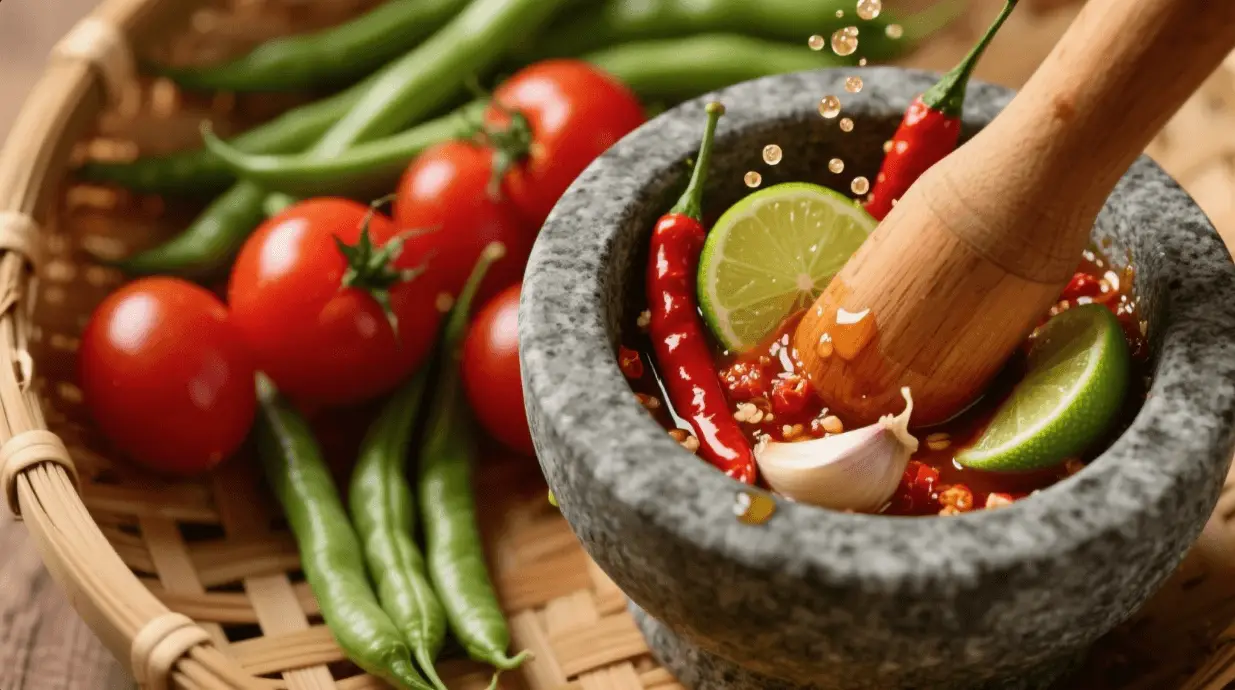 Disclaimer: Adjust fish sauce for sodium concerns. Green mango sap may irritate skin—wear gloves when peeling. Authentic heat levels vary; approach chilies cautiously.