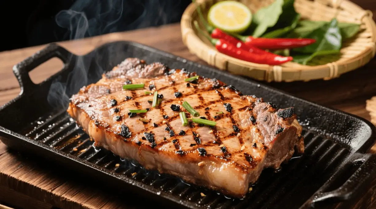 - Grill: Sear pork in a smoking-hot pan 90 seconds per side.