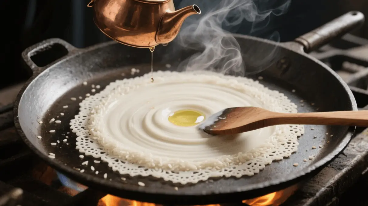 Pro tip: Chennai’s Murugan Idli Shop brushes the tawa with onion half for non-stick perfection—a hack from their 1950s street cart days.