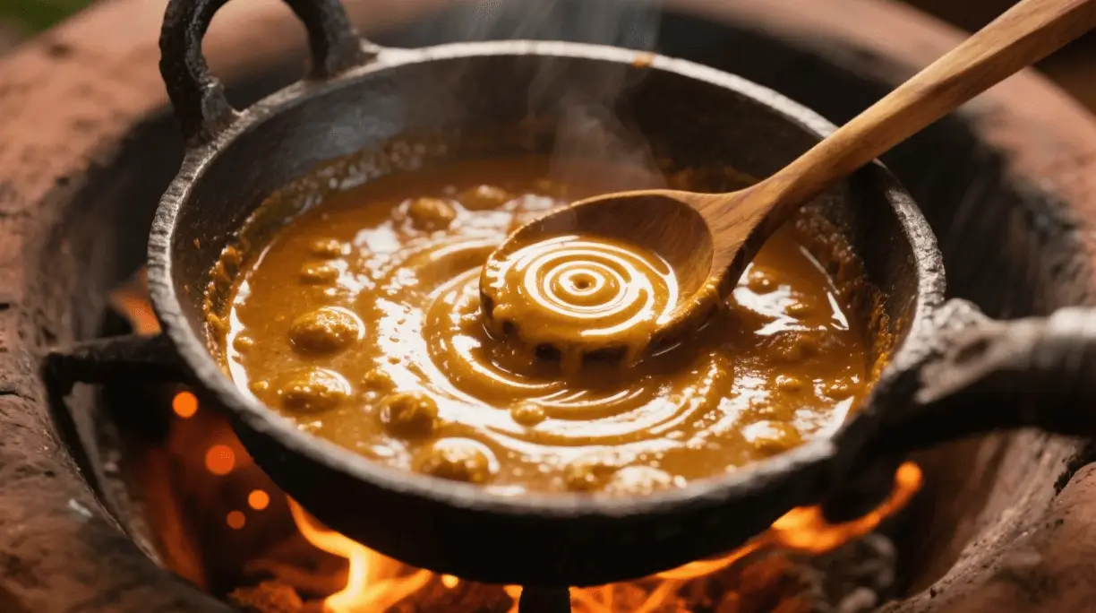 - Simmer: Pour stock; add jaggery and turmeric. Cook on low 1.5–2 hours.